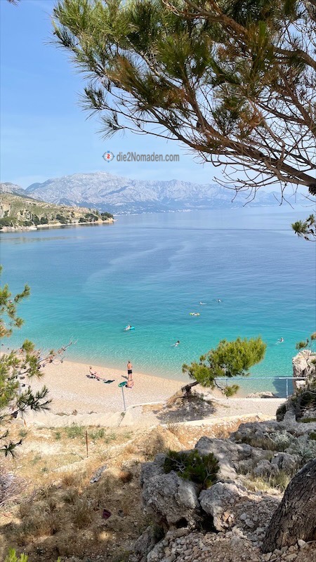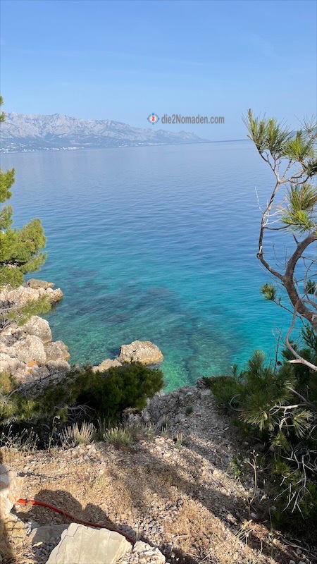 Ab Drvenik kommen wir an vielen Orten der Riviera vorbei, von Podgora, Tučepi, Makarska, Krvavica, Baška Voda bis Brela, doch keiner davon lockt uns wirklich, obwohl das Meer hier unglaublich schön ist. Zudem müsste man hier definitiv mehrere Tage einplanen. Und da wir heute schon sehr lange unterwegs sind, wollen wir nur noch schnell ein Camp finden und die Füße hochlagern. Unser Interesse, auch noch einen weiteren Ort zu besuchen, geht eher Richtung null.