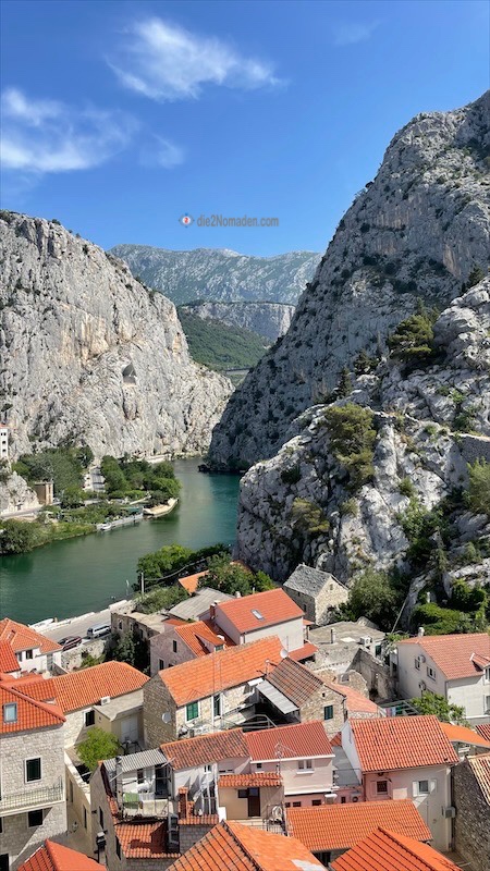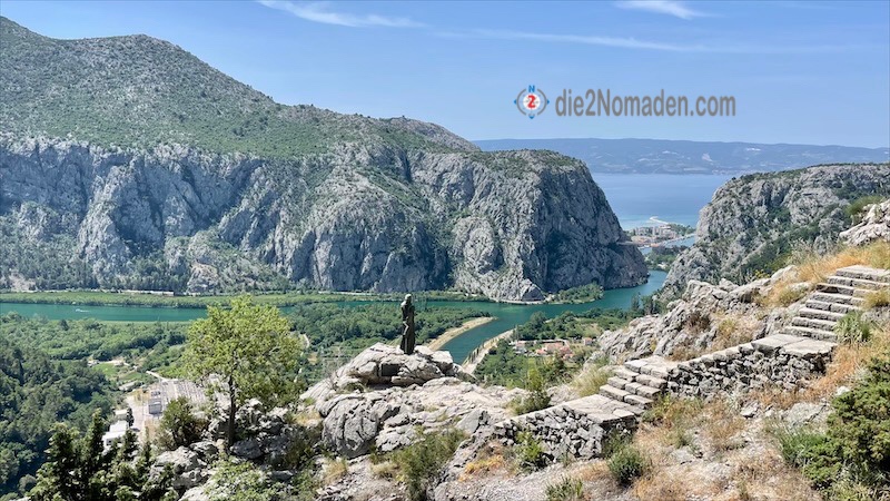 Von hier oben gibt es einen der schönsten Blicke auf den Fluss Cetina, auf Omiš und dessen Mündung in die Adria.