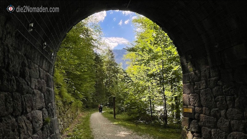 Irgendwo im nirgendwo überschreite ich auch die Bundesländergrenze zu Oberösterreich. Ein Eisenbahntunnel aus der Zeit der ersten Trassenführung dient nun den Bikern und Wanderern als willkommene Abwechslung.