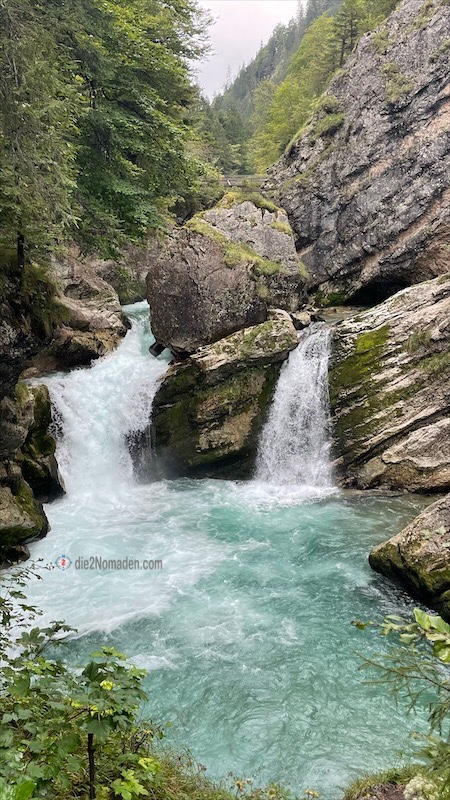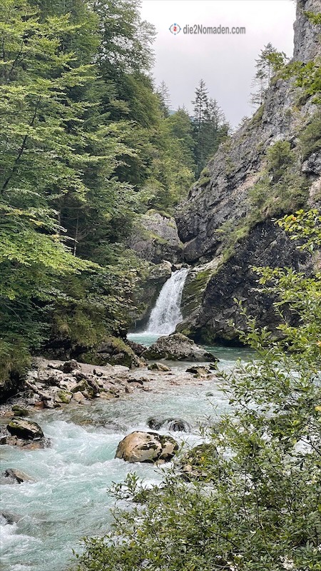 Immer wieder öffnen sich wunderschöne Ausblicke auf die schöne und wilde Steyr. Als einer der Höhepunkte ist kurz vor Hinterstoder der Stromboding Wasserfall.