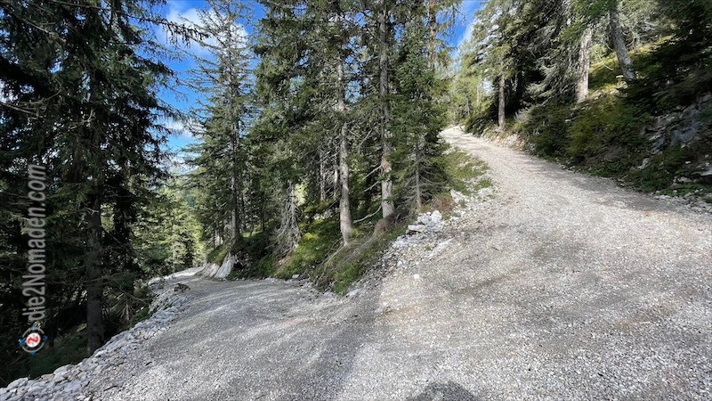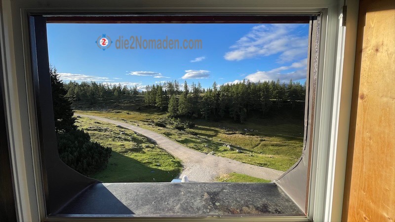 Da heute nur gute 10 km am Plan stehen, nutze ich das Frühstücksbüffet so richtig aus und komme erst um 09:45 Uhr von der Hütte los.