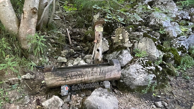 Vorbei an den Ausläufern der Felswand des Spitzlstein, erreiche ich nach etwa einer Stunde eine Forststraße, folge der ein kurzes Stück und nehme dann linksseitig wieder den Wanderweg zur Spitzlsteinalm.