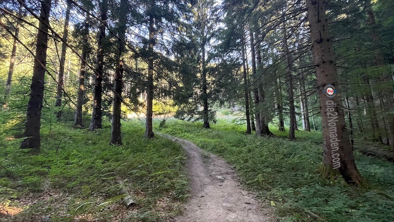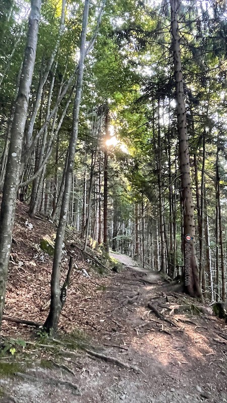 Langsam aber stetig geht es meist auf erdigen Wegen über Wurzeln im Wald bergwärts.