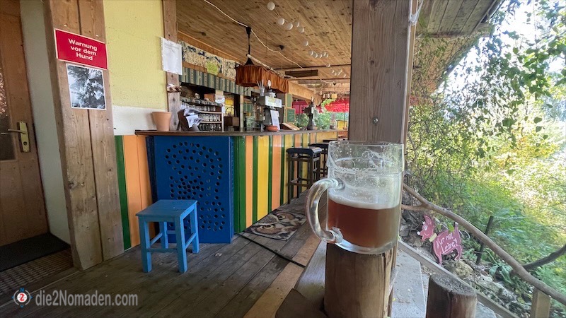 Die Cola-Bier Mischung gibt meinem Körper wieder Elan. Ich unterhalte mich noch ein wenig mit dem Besitzer, lasse auch noch meine Wasserflasche auffüllen und freue mich, dass mich das Taxiboot wieder nach Ebensee bringt.