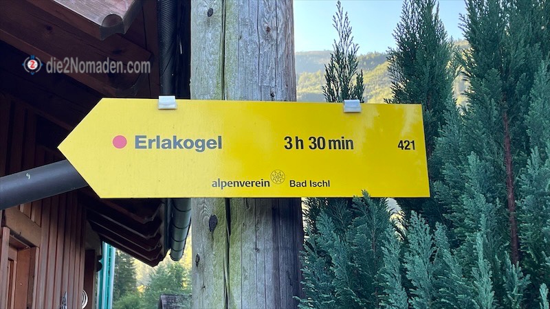 Den Parkplatz der Freizeitanlage lasse ich links liegen, quere den ausgetrockneten Rindbach, gehe durch die letzte Häuserreihe, biege nach den letzten Häusern rechts ab und erreiche meinem Einstieg, ident mit dem zum Erlakogel.