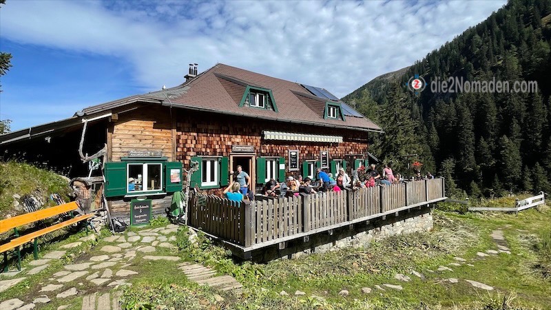 Der weitere Anstieg zur Hans-Wödl-Hütte zieht sich serpentinenartig durch den Wald. Hier sind schon wesentlich weniger Wanderer unterwegs.