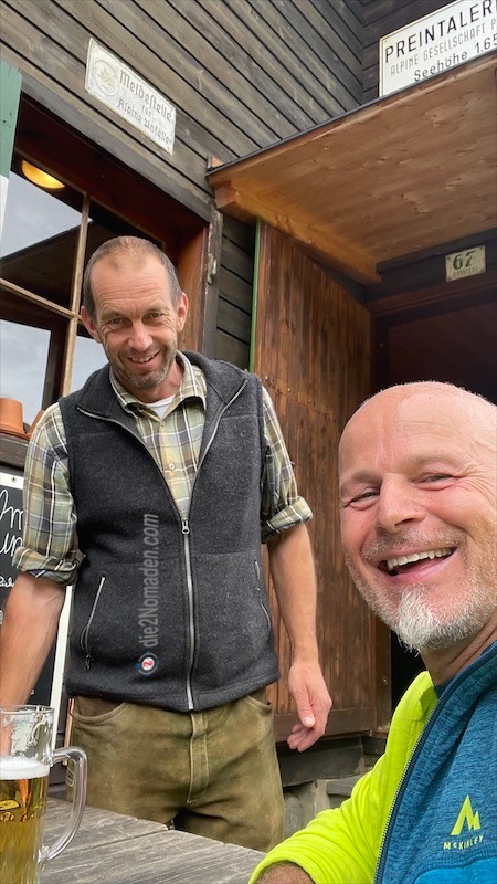 Schon von Weitem erkennt mich der Hüttenwirt und begrüßt mich mit einem herzlichen „Grias di“.