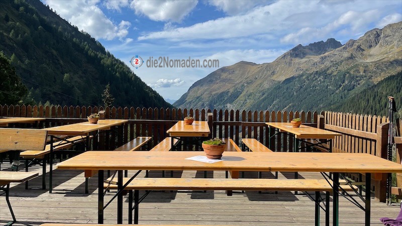 Ich genieße bei traumhaftem Sonnenschein den Nachmittag auf der Terrasse und erlebe, wie eine Schafherde von der Klafferkesselalm abgetrieben wird und andere Wanderer ankommen – die meisten kaput und geschlaucht. 🤯🤪