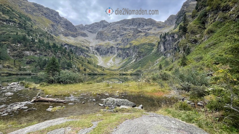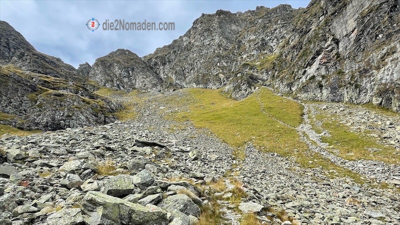 HANS-WÖDL-HÜTTE. Vorbei am Obersee ging es in steilen Serpentinen, über kleinere und größere Felsbrocken 🥵, hoch zur Scharte und verlasse somit das Sewigtal. 🥲
