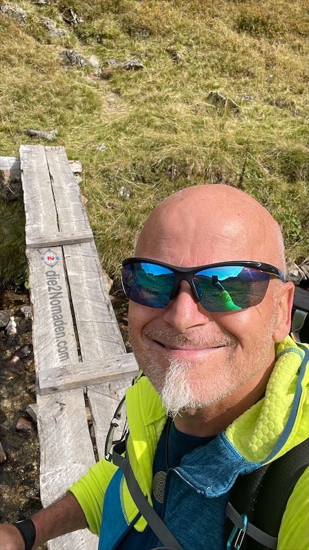 Heute morgen, bei herrlichem Wanderwetter geht es ohne Frühstück los. Also fast, Hüttenwirtin Magdalena schenkt mir eine Tasse Hauskaffee zum Abschied. 😘