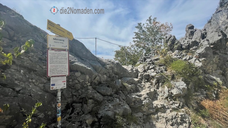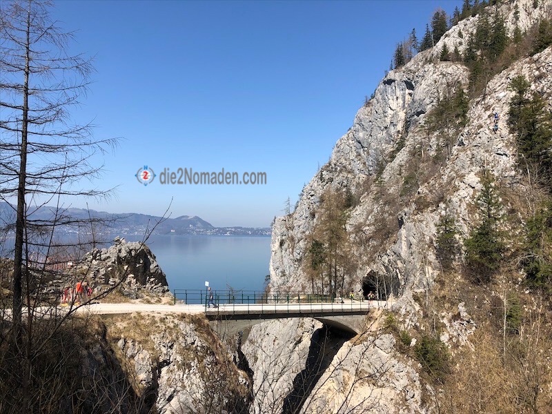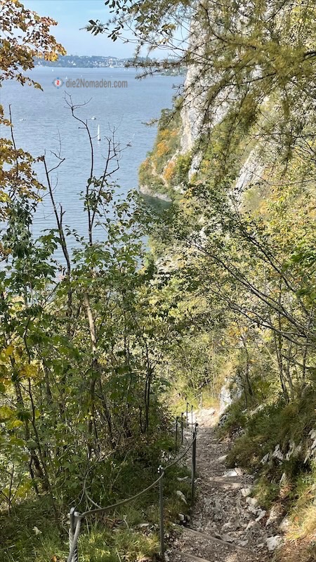 Der Miesweg ist ein in den Felsen geschlagener Weg mit Stegen, welche knapp über dem See angelegt wurden.