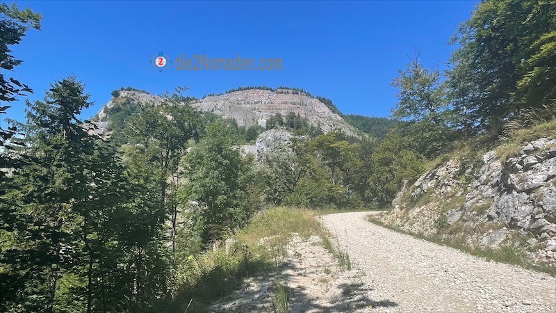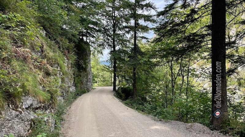 Die Schotterstraße zieht sich hoch zur Eisenbachstube, ich nehme einige Kehren und verlasse den Forstweg, kürze kurz die Straße ab und erreiche den Ranzen, ab dem die Straße nur mehr abwärts geht.