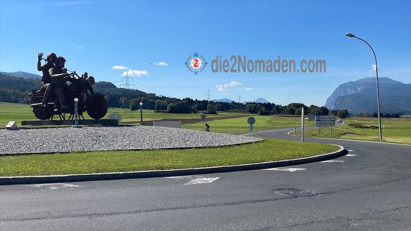 Beim Kreisverkehr vor Pogöriach, dem Örtchen unterhalb der Ruine Finkenstein, zieht es mich diesmal in ein Buswartehäuschen mit Aussicht auf den Ort.