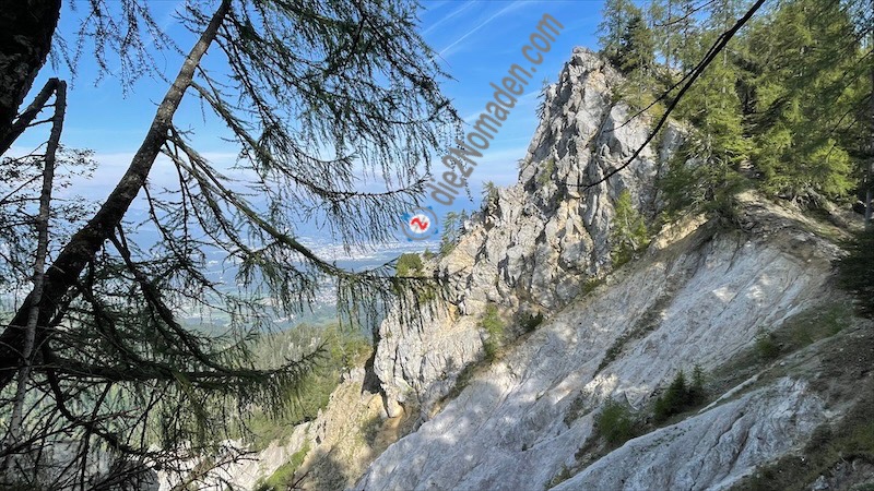 Hier zieht ein gewaltiger Wind von Slovenien herüber und ich schaue, dass ich schnell an Höhe verliere. Der Wind bringt dunkle Wollen und ich hoffe, dass ich heute koch trocken bleibe.