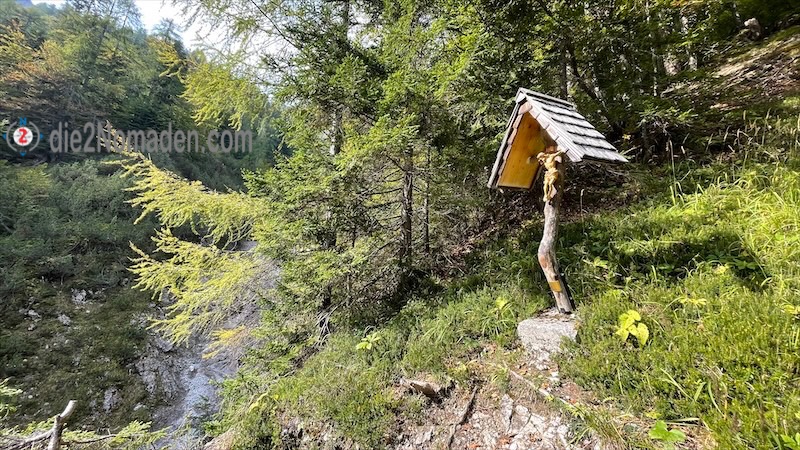 Ab der Talsohle geht der Hohlweg wieder in einen für uns normalen weichen Waldweg über und leitet mich etwa 6 km nach Kranjska Gora. Zielgerichtet steuere ich mein Booking-Quartier an und erreiche die Unterkunft nach über 6,5 Stunden.