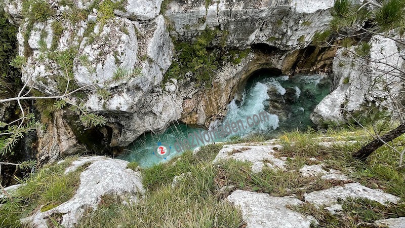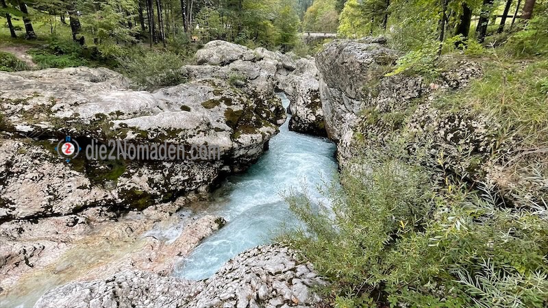 Die Kleine und die Große Soca-Schlucht. Die Ausmaße der Großen Schlucht sind jetzt nichts Besonderes, doch die Breite, an manchen Stellen gerade mal 2 Meter, beeindruckt schon.