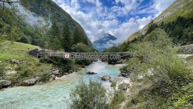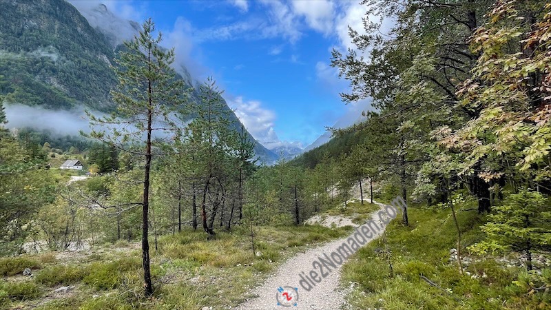 Ich schaffe es kurz vor 9 Uhr loszugehen. Der Weg bringt mich direkt zur Soca zurück und führt ab dort direkt nebenher.