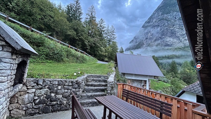 Bei der Einmündung der Lepenjica genehmige ich mir einen Kaffee, da das Wetter sich hier auf einmal sehr unbeständig verhält.