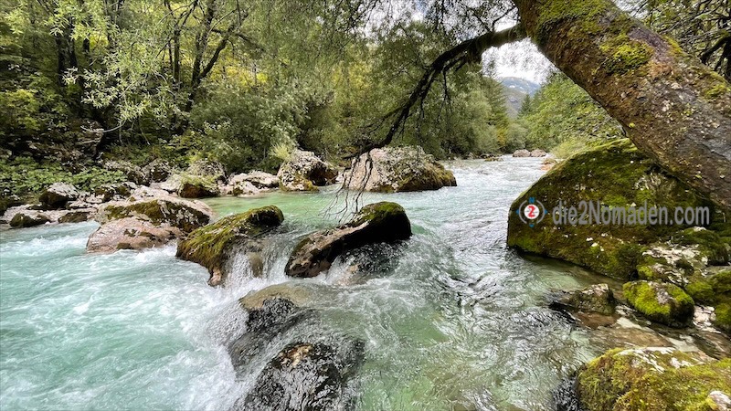 So wird mit jedem Kilometer, den ich gehe, die Soca immer mächtiger und zeigt in bestimmten Abschnitten, welche Macht das Wasser haben kann.