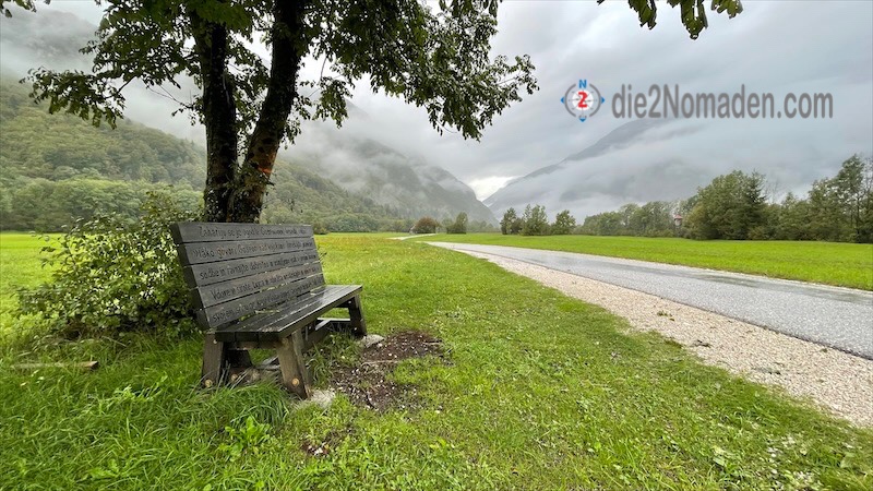 BOVEC. Der wolkenverhangene Himmel und der Nebel, der früh morgens ins Tal herein zieht, heben nicht unbedingt meine Freude am Wandern. Zum Glück dürfte es heute doch einiges an normalen Straßen geben, da das seitliche Gestrüpp und Gras beim Durchstreifen von Waldwegen bei Regen meine Hose noch zusätzlich auf Höhe der Waden einnässt.