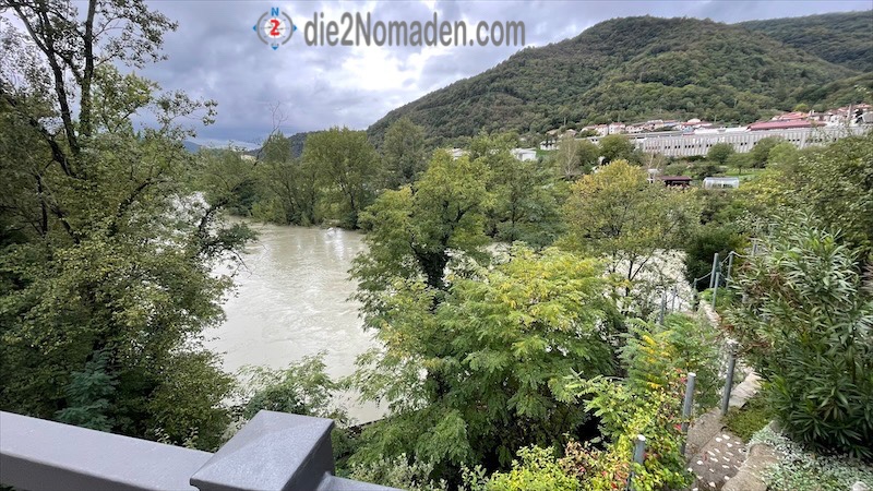 Nach dem Frühstück hole ich mein Gepäck aus dem Zimmer, wenn ich rein komme 🤪, und mache mich auf den Weg, aus Kanal raus nochmals entlang am Radweg der Soca, die heute nicht smaragdgrün ist, bevor es in Morsko den Berg hochgeht.