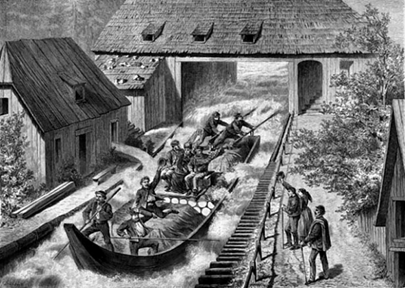 Der Fallkanal für die Flößer, welche die Salzschiffe durch den Traunfall steuerten, bestand seit dem Jahre 1311. Somit wurde der Traunfall schiffbar gemacht. Die Fahrt durch den Floßgasse, welche ca, 400 m lang und durchschnittlich 6 m breit war, dauerte ca. 54 Sekunden und war mit den damaligen Mitteln sehr riskant.