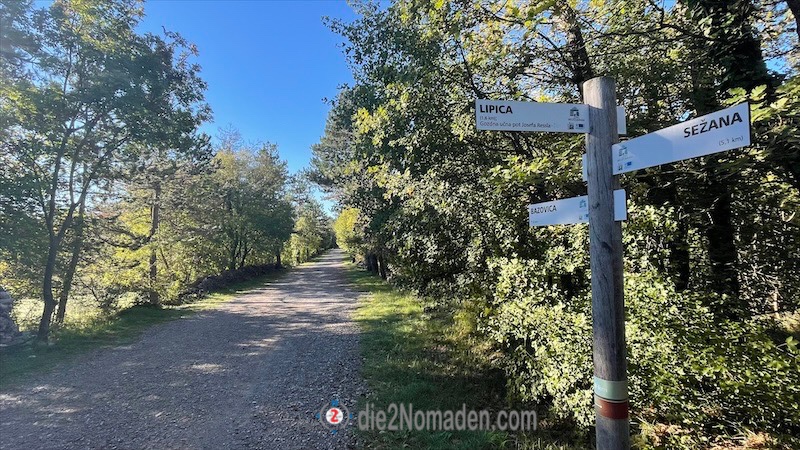 Vorbei an der Feuerwehr von Sezana beginnt eine Art Flaniermeile, eine Schotterstraße, umgeben von herrlichen Wiesen und Wäldern. Auf Höhe von Lipizza geht diese Straße in einen Hightech-Weg, benannte nach dem Förster und Erfinder Josef Ressel, über und endet am Anfang des Ortes Basovizza.