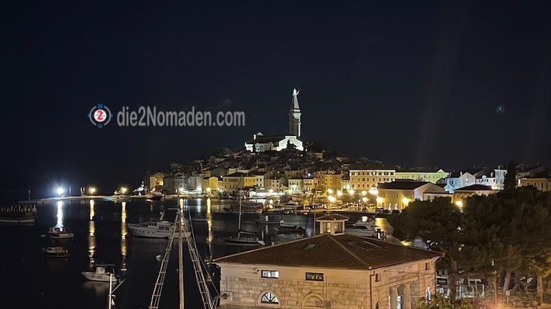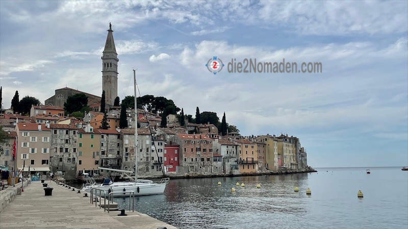 Die Altstadt samt der Kirche kommen immer näher – oder ich ihr. Rovinj kommt mir hier einerseits so übermächtig vor, andererseits wieder so klein, habe ich doch über 600 km auf diese Stadt gewartet.