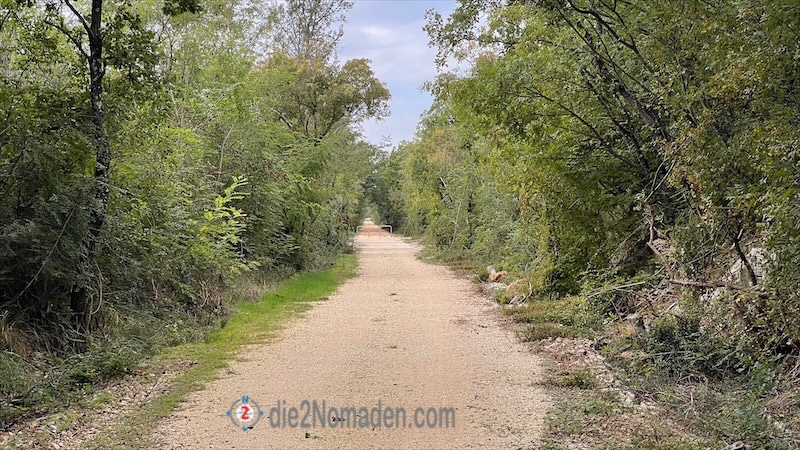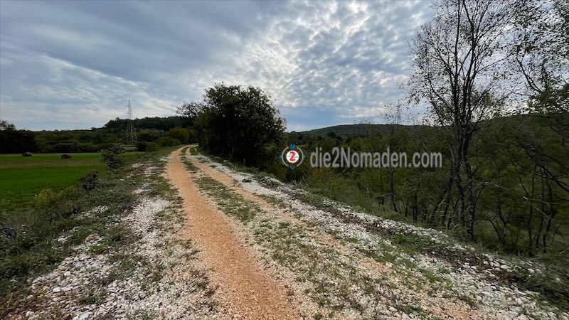 Ich steige Step by Step vom Limski hoch und erreiche die Ebene von Rovinjsko Selo. Hier treffe ich auf den ehemaligen Bahndamm der kaiserlich-königlichen Eisenbahn von Kanfanar nach Rovinj.
