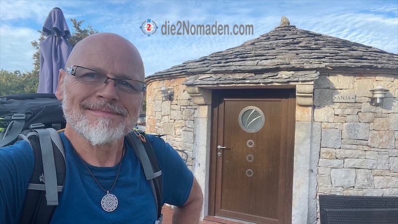 Die letzte Nacht durfte ich in einer kroatisch-typischen runden Steinhütte nächtigen. Ausgestattet mit Küche und Co. wurde gestern das letzte (Wanderer)Abendmahl zubereitet 🤪, das Essen und die letzten Sonnenstrahlen vor der Hütte genossen und relativ früh die Äuglein geschlossen.