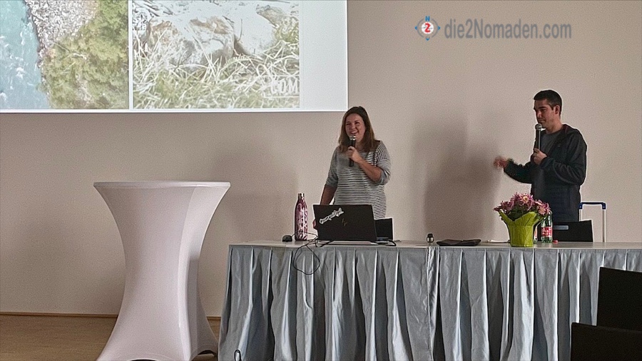 Pünktlich um 11:00 Uhr begann im 2. Obergeschoß der Vortrag „Auf 12 m² durch ganz Europa“ von Steffi und Lui von Comewithus_2. Die beiden Schweizer waren ein Teil der Truppe, die mich zum Ausbau unseres Hrn. Hofrat inspiriert haben. Die Stunde im Reisekino war sehr kurzweilig und verging sehr schnell.