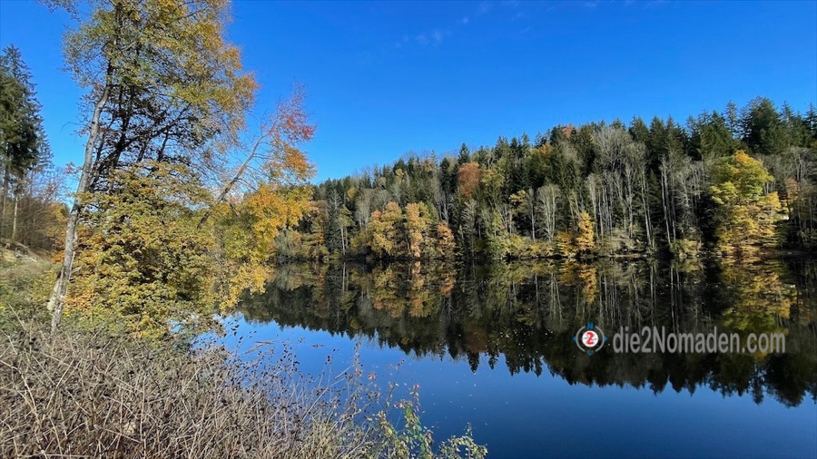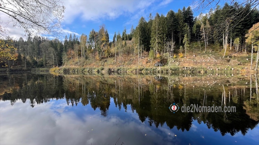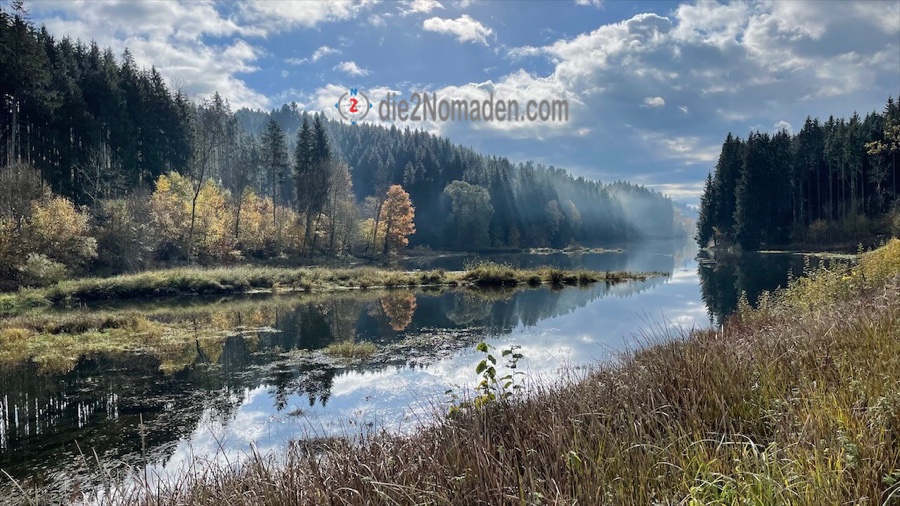Wir parkten direkt am Ortsplatz in Oberkappel, schnürten unsere Wanderschuhe und folgten dem Wegweiser zum Rannastausee, im Volksmund Mausloch genannt – ein beliebtes Fischwasser. Noch zogen Nebelschwaden mystisch durch die Bäume und über die Wiesen, aber schon bald lugte hier und da die Sonne hervor.