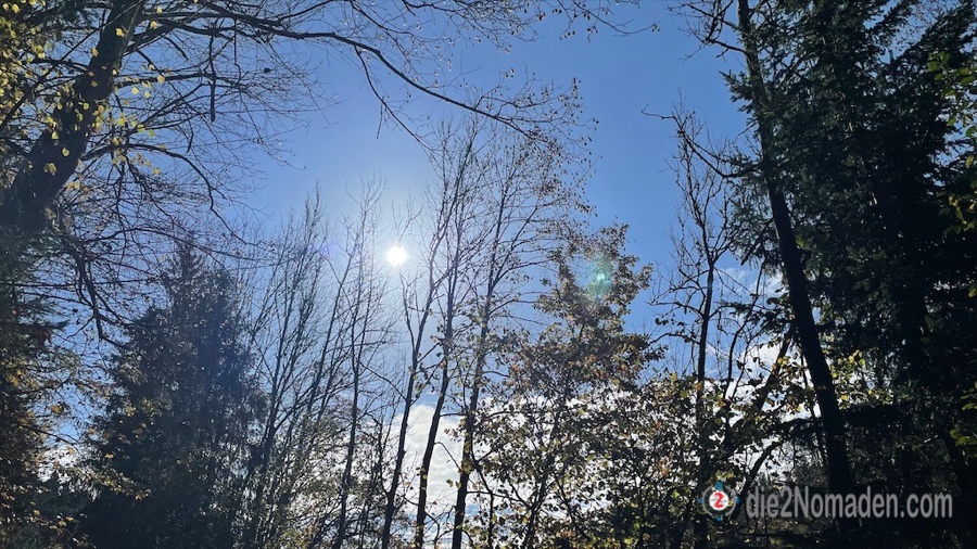 Da wir wochentags wandern, sind wir fast allein unterwegs – nur ab und zu treffen wir Wanderer oder eine Läuferin, die ihre Runde dreht. Und sonst ist es nur still und wir wandern einträchtig nebeneinander her (manchmal nebeneinander, ansonsten versuche ich mit Andreas Schritt zu halten, der noch seine 600 km-Wanderung in den Beinen hat und renn ihm hintennach).