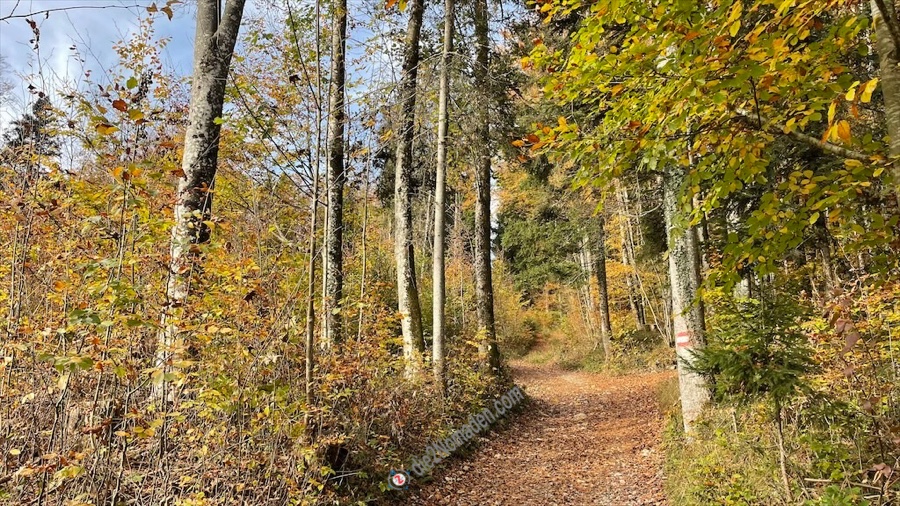Von nun an gehts bergab durch den Laubwald, wo der einsetzende Wind die Blätter raschelnd von den Bäumen fallen lässt. Einige Male bleiben wir stehen, bewundern den Anblick und horchen entzückt zu und schon bald erreichen wir wieder den See und die Uferpromenade, die nach St. Gilgen führt.