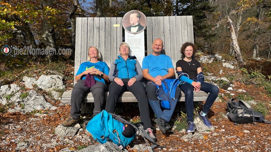 Eine kurze Rast auf den gemütlichen Bankerln und dann geht es wieder weiter bis zur nächsten Zweigstelle und auch hier entschließen wir uns für den Umweg über das nächste „Gschma Platzl“ über den Fürberg zum Scheffelblick.
