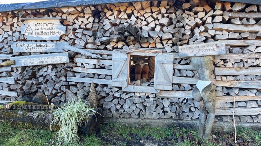 Dieser handwerklich so überaus geschickte Bastler hat nicht nur ein Traumhaus in einer Traumgegend mit einem Traumgarten und traumhafter Deko – nein! Dieser Mensch hat einen gesunden Humor und wir amüsieren uns köstlichst über die mit Herz verschönerte Toilette, den Holzstoß, in dem die Kardashian mit ihrem großen H….er(n)z aus dem Fenster schaut, dem Königsthron und nicht zu vergessen – dem Hütterl mit den vielen Herzen und dem Schmusebankerl. Alles versehen mit Hinweisen und Sprüchen, die uns zum Lachen bringen.