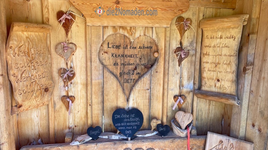 Ein Abstecher noch zum Herzhütterl und zum Schmusebankerl, wo wir eine Runde mit unseren Herzallerliebsten busseln, bevor wir uns wieder auf die Heimfahrt machen – dankbar in einem so wunderschönen Landl leben und Tage wie diesen genießen zu dürfen.