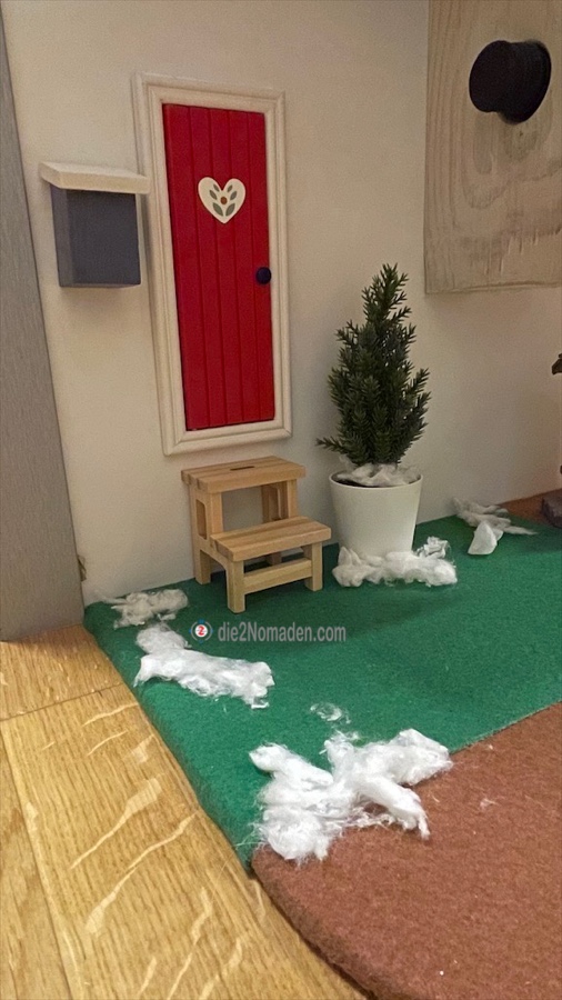 Nun erscheint auch bei uns (nach einer Idee von Corinna vom Blog „meinapulien“) erstmalig in der Vorweihnachtszeit irgendwo im Haus eine kleine Tür, hinter der ein kleiner Weihnachtswichtel, wenn auch nur für kurze Zeit, eingezogen ist.