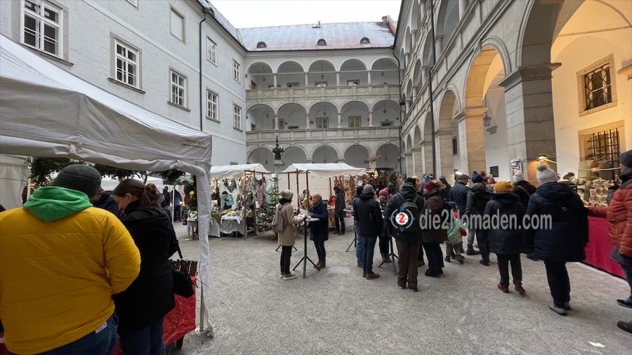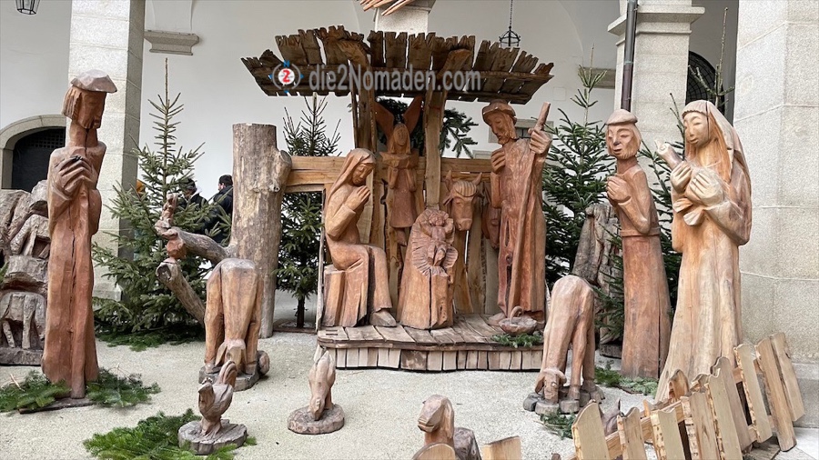 Der Adventmarkt im Landhaus: Dieser wird Kreativ-Adventmarkt genannt und ist wirklich nett und kreativ. Es gibt auch hier allerlei Schönes zu bewundern, auch eine große Krippe mit lebensgroßen Figuren und beim Alpakastand kann ich nicht widerstehen und kaufe mir warme Einlegesohlen für kalte Wintertage.