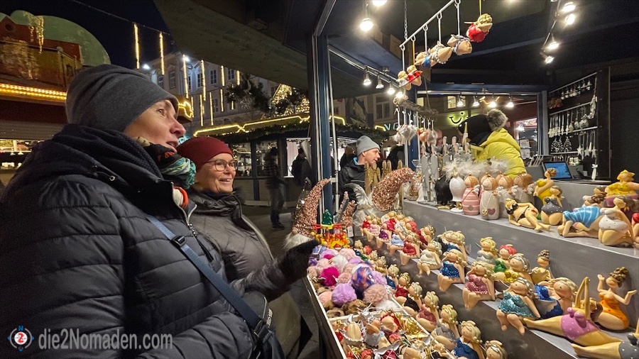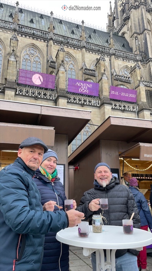 Der Adventmarkt am Dom: Super schöne, neue Hütten stehen hier vor dem wunderschönen Dom und gerade bei unserer Ankunft geben einige Alphornbläser eine kleine Kostprobe ihres Könnens. Wir gehen eine Runde, es gibt hier schönes Handwerk zu bewundern und da es doch etwas kalt ist, genießen wir einen ausgezeichneten Glögg mit Mandeln und Rosinen. Vom wirklich sehr kreativen Karussell sind wir begeistert. Auf allerlei verschiedenen Gerätschaften und Sitzen kann man eine Runde drehen, sofern sich jemand erbarmt und für eine Runde am Fahrrad strampelt, das das Karussell zum Drehen bringt.