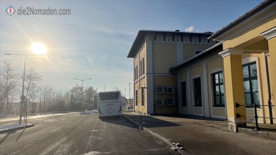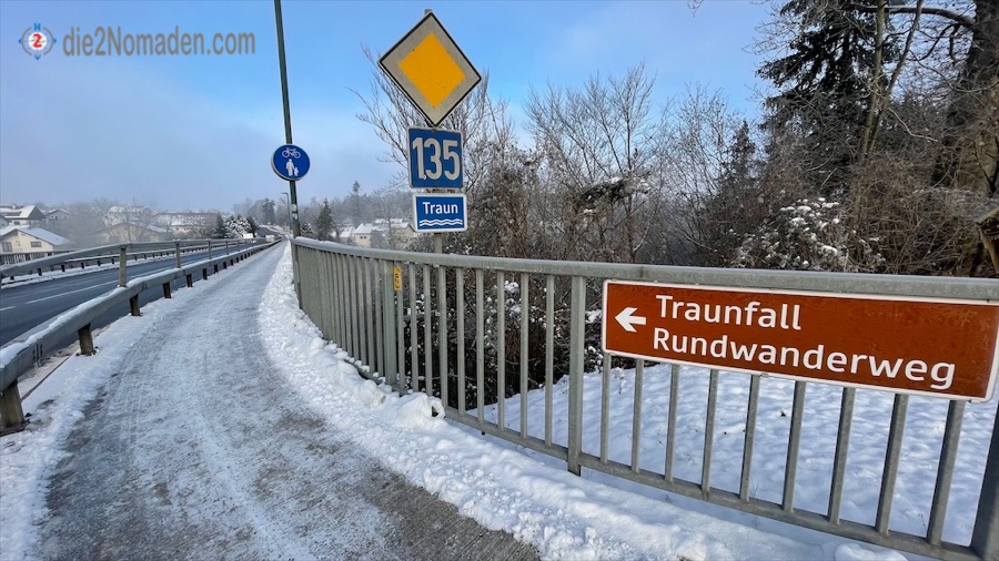 Da meine Frau Nomadin am Dienstag wie immer Homeoffice hat, der Tag aber ein herrlicher Wintertag zu werden verspricht, beschließe ich diese Etappe wieder alleine zu bestreiten. Man(n) gönnt sich ja sonst nichts. Die Wanderung beginnt mit dem Parken des Autos am Bahnhofsvorplatz Lambach und dem Einsteigen in den Bus 505 des OÖVV um 08:45 Uhr. Ich schaffe es auf die letzte Minute, zücke mein Handyticket und nehme auf einer 4er-Bank Platz. Ziemlich genau um 09:02 Uhr steige ich an der Bushaltestelle Roitham am Traunfall Traunbrücke (B144) aus.
