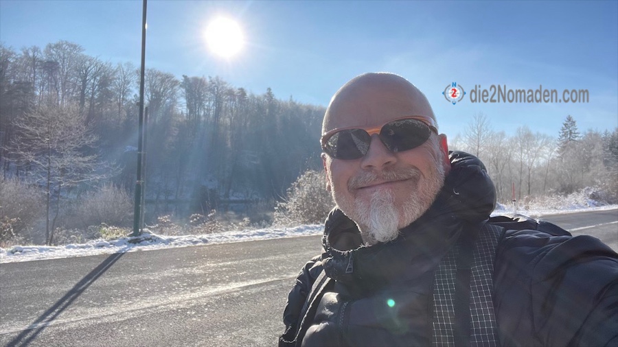 Als ich endlich fertig bin, den Rucksack schultere und meinen Trackinglink unserer Nomadin/Schwager/Schwägerin-Whatsapp-Gruppe übermittle, ist der Bus schon längst aus der Haltestelle abgefahren. Ich freue mich diebisch, denn die Daheimgebliebenen werden sich in ihren Allerwertesten beißen, dass sie diesen Traumtag verpassen.