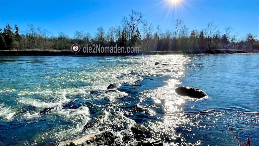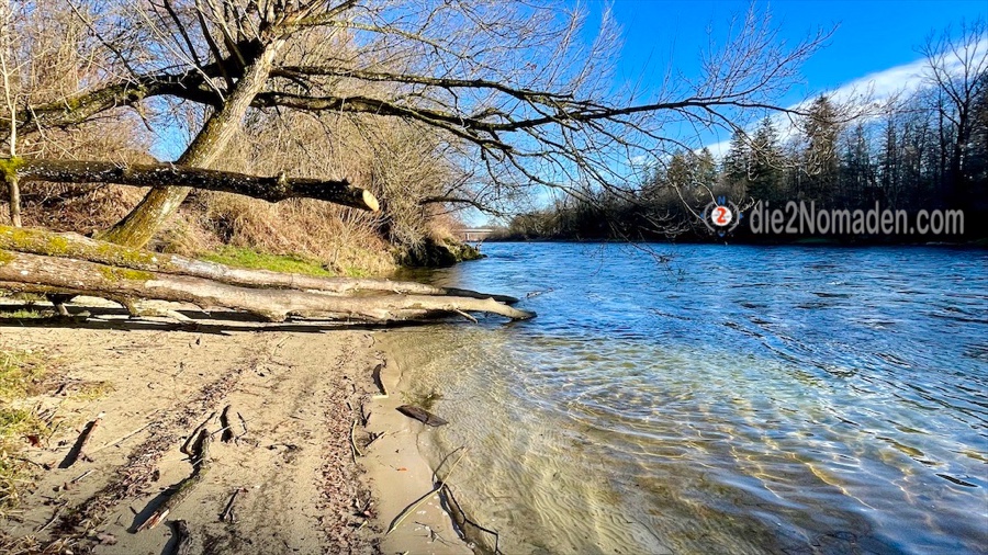 Großteils bin ich alleine unterwegs, nur ab und zu treffe ich auf Hundehalter, welche ihre Vierbeiner ausführen. Die Sonne steht so perfekt, sodass sie mir ihre Wärme spendet. Ich komme an einer Bachmündung vorbei, welche mir sehr bekannt vorkommt, war dies doch der Endpunkt meiner Wanderung „Genuss am Almfluss“ – dem Almspitz. (Hier geht’s zur letzten Etappe der Tour)
