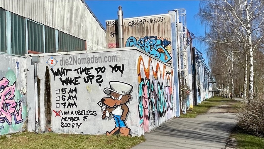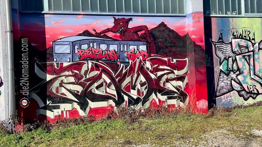 An den Rückseiten der Welser Messehallen faszinieren mich die viele Graffiti-Abbildungen.