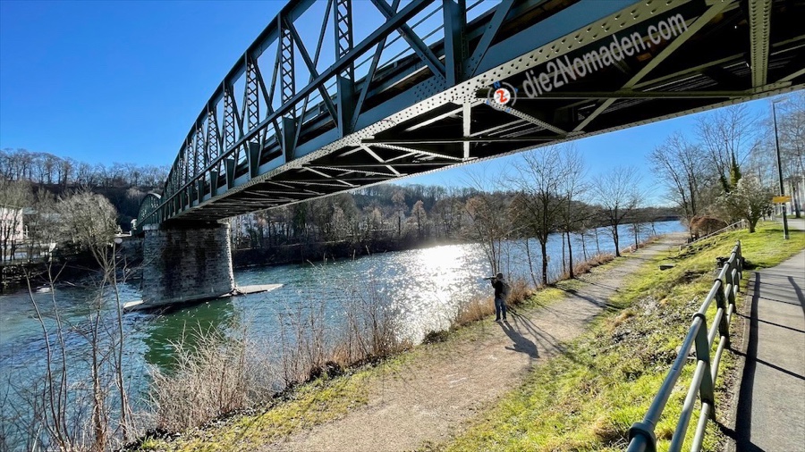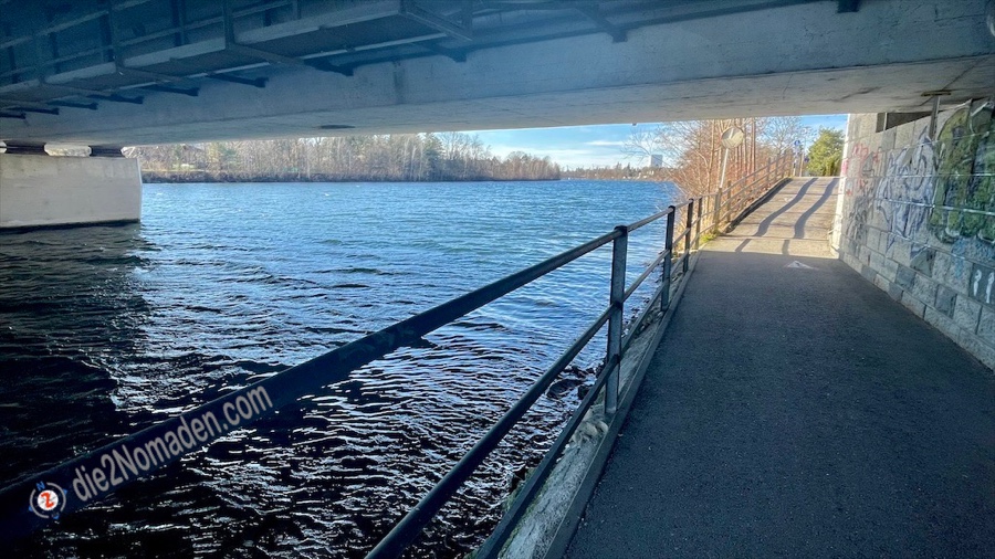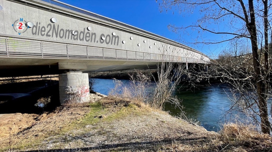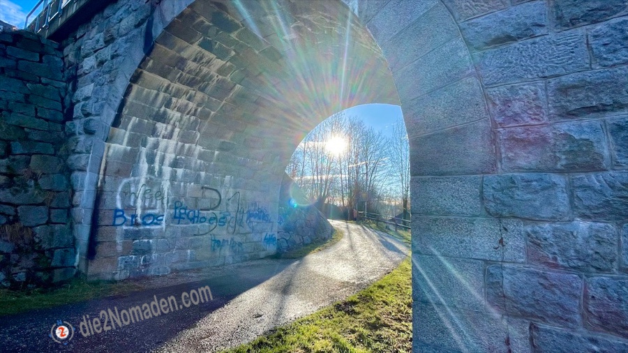 Eiskalter Wind zieht durch die Siedlung und zwingt mich dazu, meine Handschuhe anzuziehen. Keine 800m vom Bahnhof entfernt, habe ich schon die mächtige alte Unterführung der Lilo erreicht und wandere ab hier gemütlich der Traun entlang.