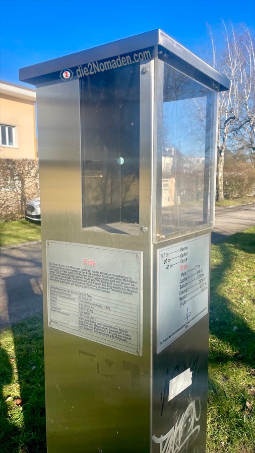 Entlang der Strecke finden sich Infosäulen, an denen unser Sonnensystem bildlich und in Daten erklärt wird.