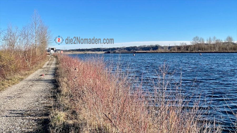 Immer wieder zwingen mich Regenlatschen, auf gut hochdeutsch Pfützen 😅 zu einem kleinen Umweg, weil ich sonst im erdigen Bereich einsinken würde. Sehr bald erreiche ich einen Damm, der perfekt zum Wandern ist und mir nun für über 12 km, bis zum Stadtgebiet von Wels, einen sicheren Weg bietet.