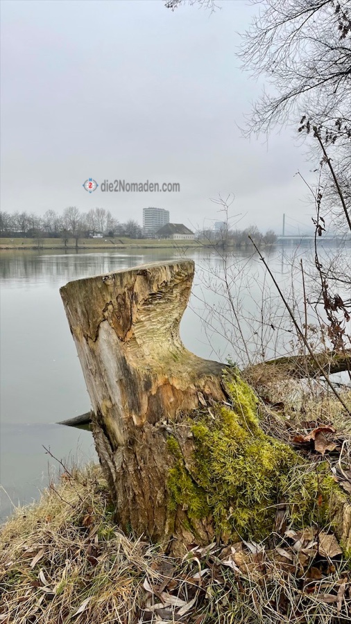 Zuerst geht es unter der erweiterten Donaubrücke mit den zwei neuen Bypassbrücken durch. Der Uferweg zieht sich in einem weiten Bogen Richtung Steyregg. Immer wieder kommen wir an von Biber angenagten Bäumen vorbei. Jedes einzelne Teil sieht aus, wie von einem Bildhauer geschaffen.