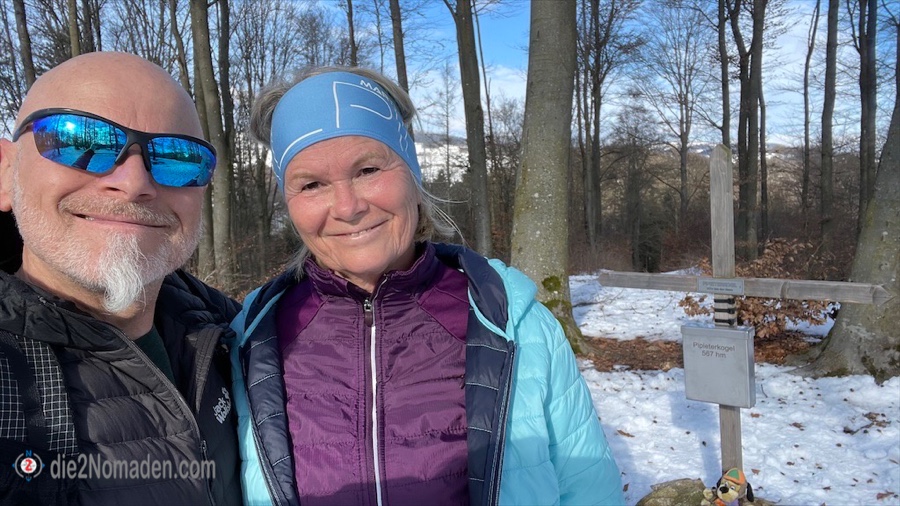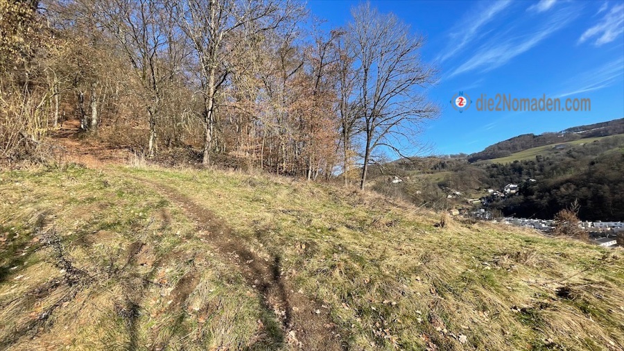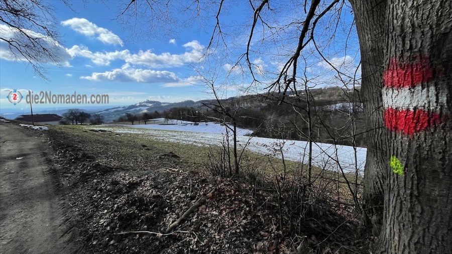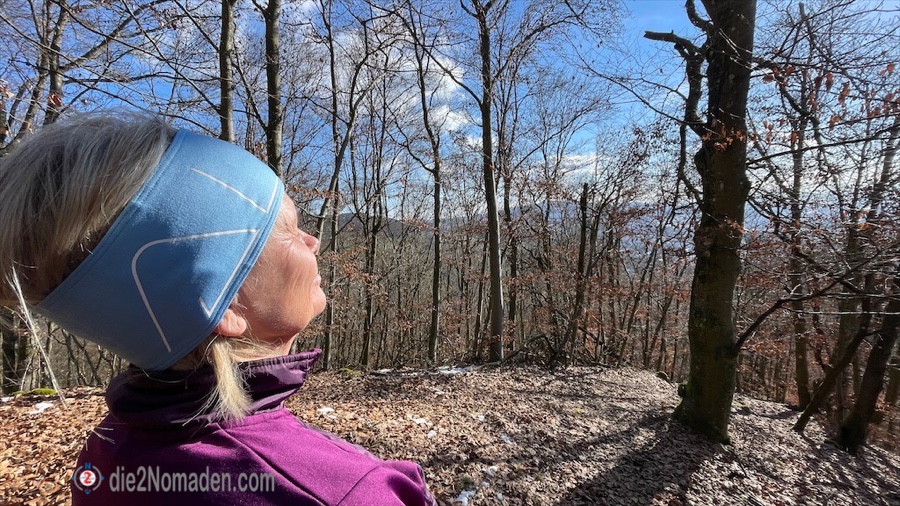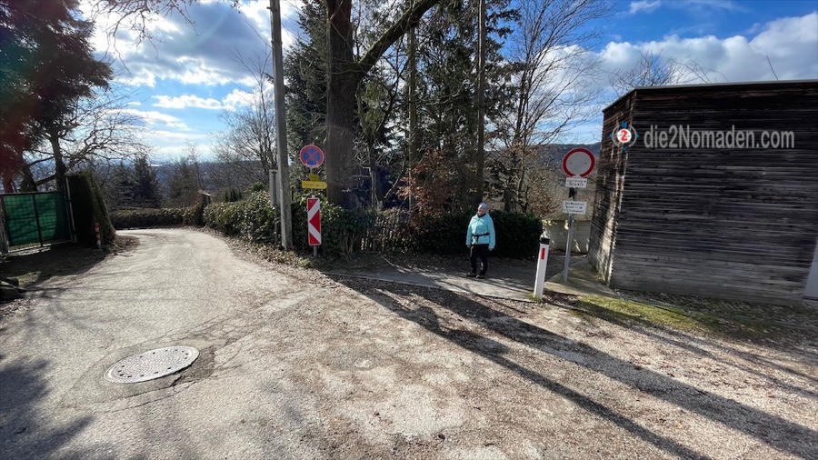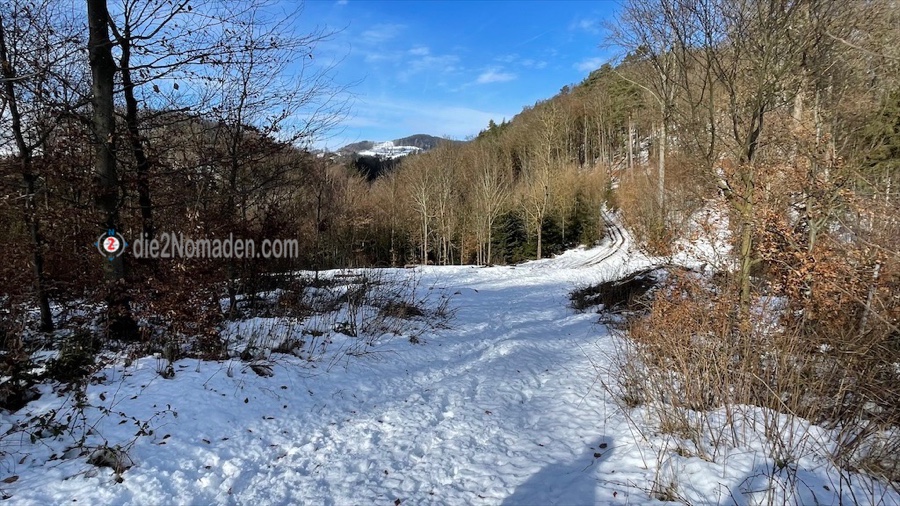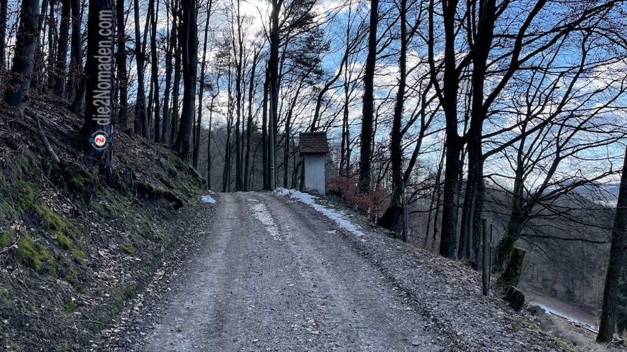 Und da geht’s jetzt wirklich hinauf, aber eine Wanderung ohne Anstrengung gibt’s ja eigentlich sowieso nicht. Ohne Fleiß kein Preis waren oftmals Mamas Worte. Nun ja – der Waldweg ist schneefrei und dafür mit Laub vom Herbst noch bedeckt und so wandern wir nach Andrés Worten „step by step“ (er ist auch mein Motivationstrainer) hinauf.