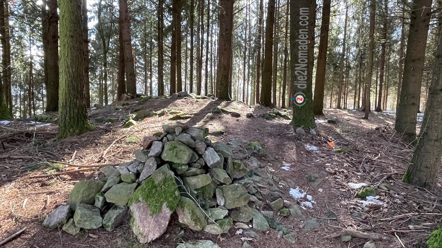 Wir wandern weiter zum Pipieterkogel, der sich anstandshalber mit einem Gipfelkreuz und einem, an einen Baum genagelten und ziemlich zerrupften Auerhahn (eh schon lange tot) schmückt. Wir finden wieder einen Stein, den wir mitnehmen für die Stoaroas und einen legen wir von uns hin. Und dann machen wir uns wieder auf den Weg.